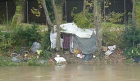Montagne di calcinacci di lavori iniziati e mai conclusi, tronchi d’albero accatastati sugli argini, alberi decorati da sacchetti di plastica, vegetazione incolta che spesso nasconde mini-accampamenti, anche se i senza tetto prediligono i ponti. Il primo sotto ponte Garibaldi.